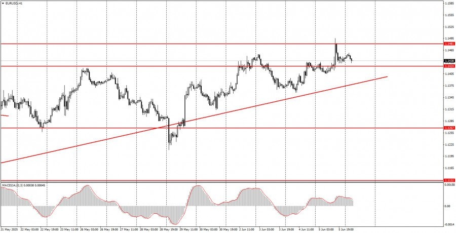 https://basechop.ru/wordpress/?p=45151 Разбор сделок четверга: 1Н график пары EUR/USD. Валютная пара EUR/USD в четверг продолжала восходящее движение, согласно текущей тенденции. Причин для нового «взлета» европейской валюты не было никаких. Единственное важное событие в четверг – заседание ЕЦБ. Именно после него и начался довольно сильный рост евро, который все же закончился падением. Однако евровалюта, может быть, в конце дня и опустилась, но сначала-то она выросла! Выросла опять без причин и опять без оснований. ЕЦБ принял решение в восьмой раз понизить все три ключевые ставки, а Кристин Лагард не подала ни единого сигнала о завершении цикла смягчения монетарной политики. По ее словам, инфляцию удалось побороть, темпы роста экономики не будут снижаться из-за тарифной политики Дональда Трампа, но в то же время из ее слов следует, что ставки можно продолжать понижать, так как в 2026 году инфляция может опуститься до среднегодового значения 1,6%, что очень мало. В общем, если бы вчер