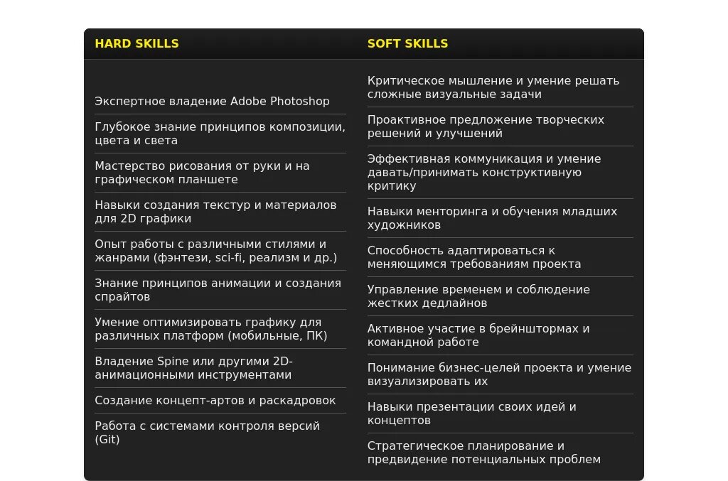 Адаптация раздела "Навыки" Senior 2D Artist