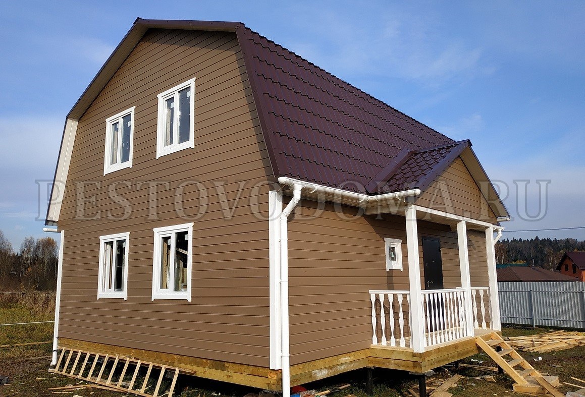 ✅Дом под ключ построен за 26 дней. 🔑Дом каркасный с мансардой 7,0 на 9,0м + терраса 📝🔨 Краткие технические характеристики: 🏡Проект дома К42 Дом с утеплением на 200мм под ключ Двойная (усиленная) обвязка основания. Установка водосточной системы Docke Утеплитель: Rockwool , толщиной 200 мм ПВХ пластиковые двухкамерные зимние (3 стекла) Отделка снаружи: имитация бруса Покраска дома снаружи Кровельное покрытие: металлочерепица Classic Satin Цвет: 8017 (коричневый) Фундамент: винтовые металлические сваи Ссылка на проект https://pestovodoma.ru/doma-karkas/dk42