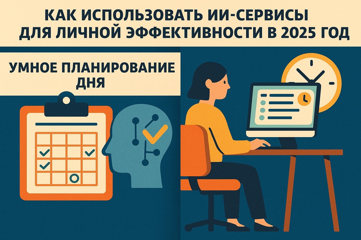 Откройте для себя 4 мощных ИИ-сервиса, которые помогут вам планировать день, генерировать идеи, контролировать финансы и бороться с прокрастинацией. #ИИ2025 #продуктивность #лайфхаки #искусственныйинтеллект ИИ, искусственный интеллект, AI, лайфхаки, продуктивность, планирование, Reclaim.ai, Notion AI, Cleo, RescueTime, цифровая гигиена, управление временем, фокус, финансовое планирование, подкаст Как использовать ИИ-сервисы для личной эффективности в 2025 году. В 2025 году ИИ-сервисы становятся незаменимыми помощниками не только для бизнеса, но и в повседневной жизни. Один из самых заметных трендов — умное планирование дня. Сервисы вроде Reclaim.ai или Motion используют ИИ, чтобы автоматически расписывать ваш график: они расставляют приоритеты, учитывают дедлайны, личные привычки и даже прогнозируют усталость. Вы задаёте цели, а алгоритмы подстраивают расписание в реальном времени, включая перерывы и фокус-сессии. Это удобно для фрилансеров, студентов и всех, кто работает с самоорганиз