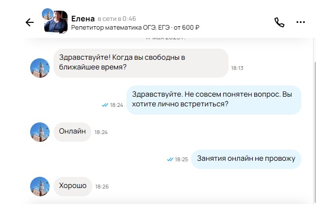 До сих пор не могу понять как же работает продвижение на Авито. Логика в чём? Выкладываю объявление о наборе учеников и ... количество просмотров не зависит от того: беру я продвижение или нет. Что с ним, что без него их одинаковое количество (хотя с продвижением то даже и меньше), при чём всё это не зависит от размера бюджета. Впрочем, хотела рассказать о странных запросах. Не перестаю удивляться тому, что взрослые (ли?) люди просто не читают текст Итак, в конце мая снова запустила своё объявление. Терпение "лопнуло" после третьего сообщения. Коротко обо всех трёх Эта переписка самая лаконичная))) Переходим к следующей Здесь даже автоматизированный Ассистент сумел ответить. Читаем дальше Что значит "наберите номер"? Мне ЗАЧЕМ это делать? В принципе, мой ответ тоже виден Объясняю, что район указан в объявлении и уточняю, что значит "год медицинского". Оказалось, что медучилище. Человеку обязательно нужен телефон, хотя выше я уже объясняла ему, что это возможно только после того как мы