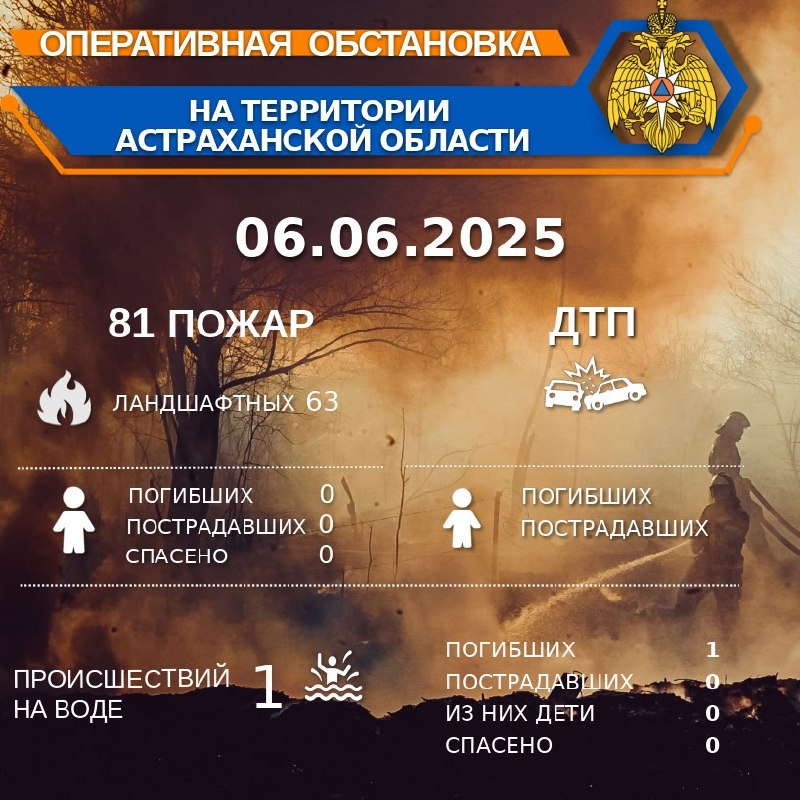 🚨Оперативная обстановка на территории Астраханской области по состоянию на 00:00 06.06.2025