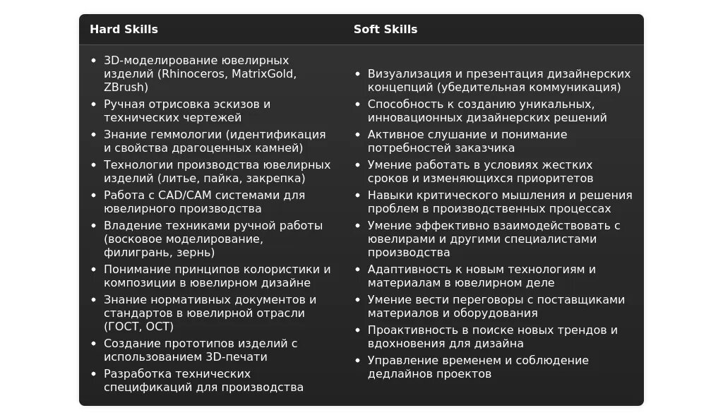 Адаптация раздела "Навыки" для художника-дизайнера ювелирных изделий