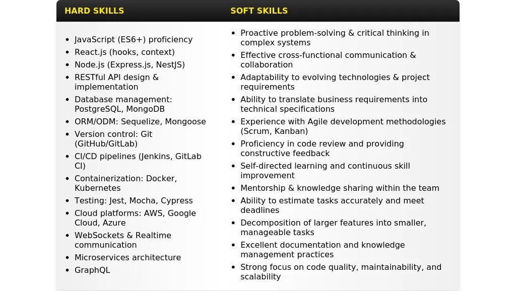 - Full Stack Engineer (JavaScript/React) - с указанием конкретных технологий.
