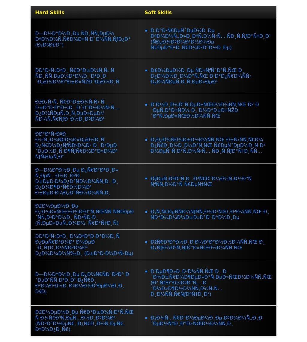 - Слишком общие фразы: Избегайте фраз типа "ответственный", "коммуникабельный", "исполнительный". Они не дают конкретной информации о ваших навыках и опыте.