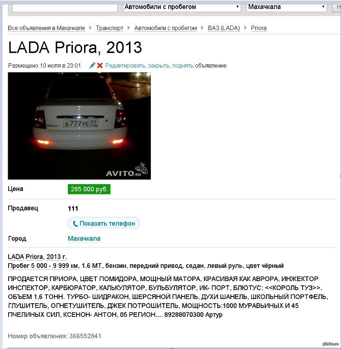 Продажа автомобилей — это не только про цены, пробег и технические характеристики. Иногда в объявлениях столько юмора и самоиронии, что хочется сохранить их в закладки. Собрала самые смешные варианты — от «Москвича-садиста» до «токалки» (это то, что вы подумали) в хорошие руки. "Мощный матора, красивый как Аврора, инжектор-инспектор..." Объявление написано в стиле рэп-баттла. Продавец явно творческая личность. Классика жанра: продавец с юмором подчёркивает, что в этой «копейке» нет ничего лишнего, кроме надёжности и ностальгии. Отчаявшийся владелец Гранты предлагает скидку в 170 тысяч, иначе грозит устроить ДТП. Видимо, машина и правда разочаровала. Трогательное объявление от лица машины, которая обижена на хозяина. Возможно, самый грустный пост в подборке. Продавец честно признаётся: машина превратилась в руину исключительно благодаря её вождению. "Вы мазохист? Вам сюда. Этот Москвич покажет вам новые грани понятия 'мучение'." Продавец честно предупреждает: машина исправна, но её