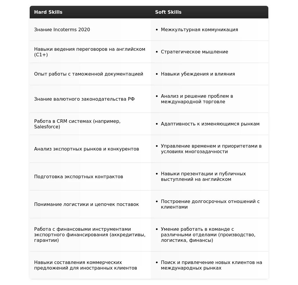 Адаптация раздела "Навыки" для специалиста по экспортным продажам