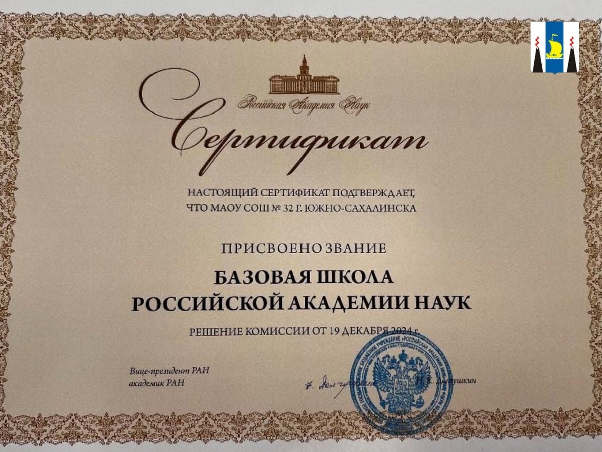 🗾 Сахалинскому образовательному учреждению присвоен статус «Базовой школы РАН»