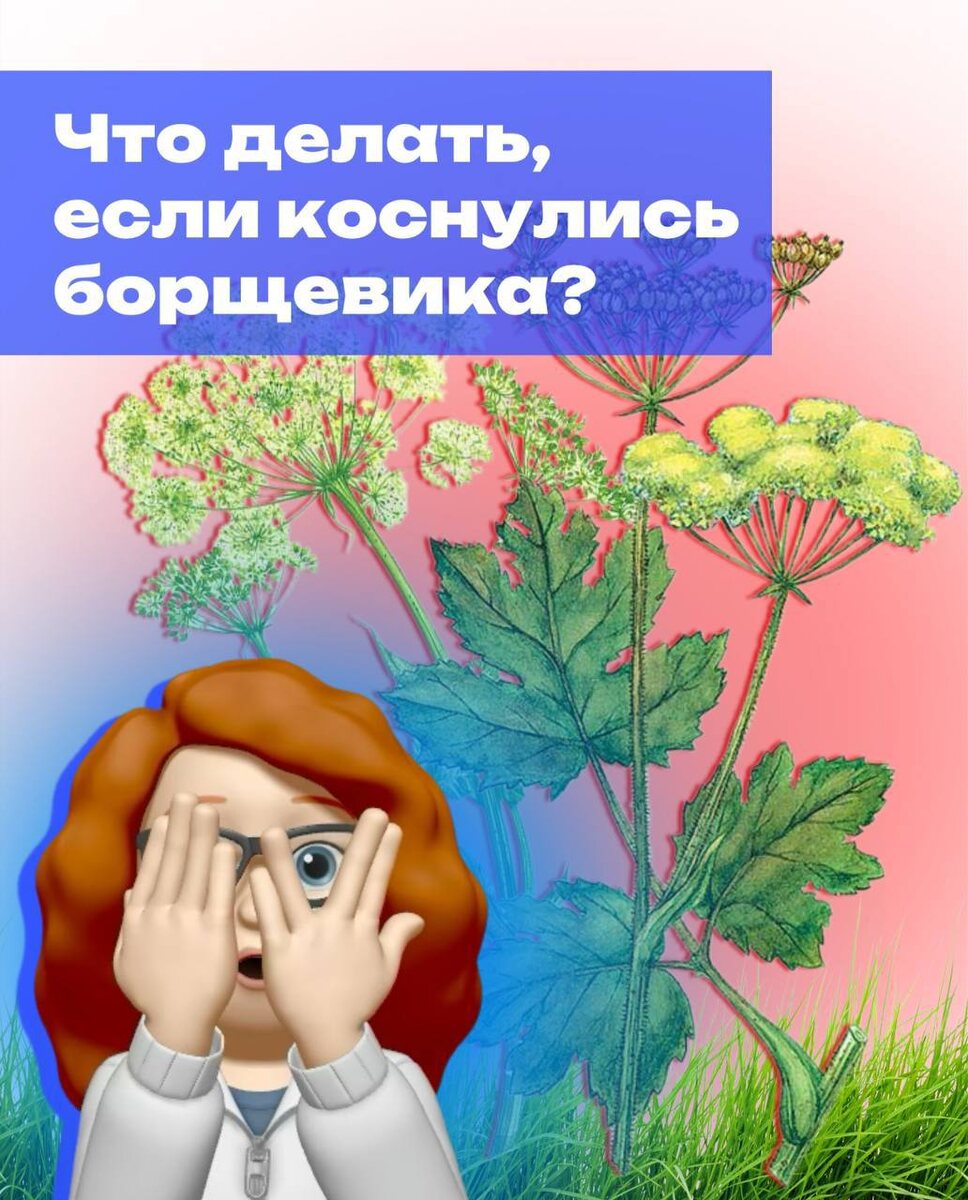 Борщевик Сосновского — красивое, но очень опасное растение. С ним шутить не стоит🍃 Пикник на траве — классно, но если трава — борщевик, лучше быть осторожным. Его сок вызывает сильные ожоги, которые проявляются не сразу, а через несколько дней Как распознать борщевик❓ • Высокий (до 3-5 м) с толстым полым стеблем • Крупные разрезные листья, похожие на виноградные • Белые зонтики из мелких цветков наверху Что делать, если попал сок на кожу❓ • Сразу смыть водой с мылом • В течение недели-двух не загорать и закрывать кожу одеждой 👉 Если сок попал в глаза или на слизистые — тщательно промыть водой Почему ожог появляется позже❓ – Сок борщевика становится опасным под солнцем — запускается фотохимическая реакция. Через 4-5 дней кожа краснеет, появляются пузыри, которые могут сильно болеть при повреждении ‼️ Если ожог случился: • Не прокалывайте пузыри • Защитите место мягкой повязкой • При больших поражениях или у детей — обратитесь к врачу Заживает долго: пузыри лопаются, образуются