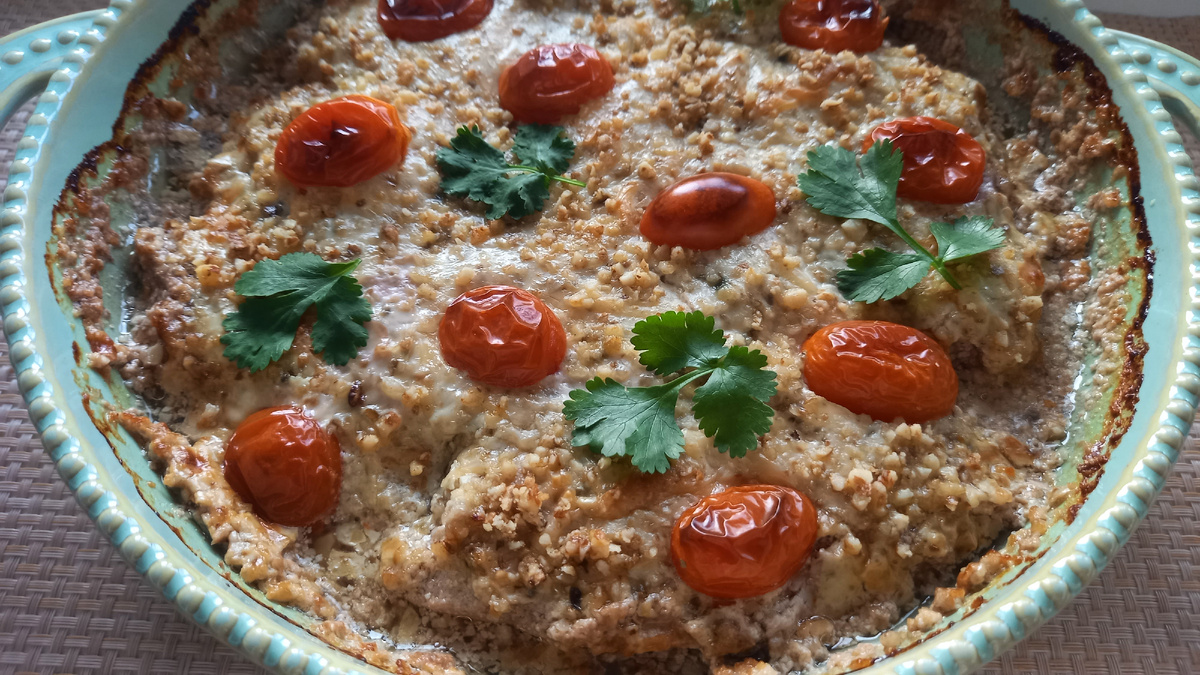 Блюдо простое, быстрое, "без заморочек". Получается очень вкусно, сливочно и ароматно. Куриное филе нарезаем небольшими порционными кусочками Добавляем к нему специи, соль, горчицу и растительное масло, перемешиваем и даем промариноваться 1-2 часа(можно больше) Для соуса грецкие орехи измельчаем, добавляем их к сметане и сыру, перемешиваем Форму для выпечки смазываем растительным маслом и выкладываем подготовленное филе Сверху добавляем соус Раскладываем по всей поверхности черри и посыпаем орешками Ставим блюдо в разогретую до 180° духовку на 45-50 минут. Получается нежная курочка с ореховым ароматом Готовьте с удовольствием и подписывайтесь на канал. Спасибо за лайки и комментарии. Впереди много интересных рецептов от Веселого Бублика, не пропустите.