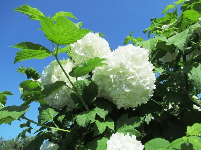 Кустарник калина Бульденеж это разновидность калины обыкновенной, только она декоративная. Для красоты, и цветки у ней шапками, чем - то даже похожи на соцветия гортензии. Если Бульденеж посадить в сильно затененном месте, то цветение не будет обильным и цветки будут мелкими. Но и совсем на яркое солнце высаживать калину тоже не нужно, могут деформироваться листья. Освещение должно быть умеренным. Калина Бульденеж не любит кислых почв, поэтому при посадке не забывает добавлять в почву древесную золу. Цветение Бульденеж длится 2 -3 недели в зависимости от погоды. Максимальная высота кустарника бывает до 3 - 3,5 метров, и он может загущаться, поэтому периодически придется вырезать лишние ветки. Сформировать из кустарника можно и деревце, или оставить несколько стволов, рекомендуют не более 7 - 8. Цвести кустарник начинает на 2 или 3 год после посадки. Из плюсов можно назвать зимостойкость кустарника, декоративность, особенно во время цветения, неприхотливость. Из минусов - её любит тля,