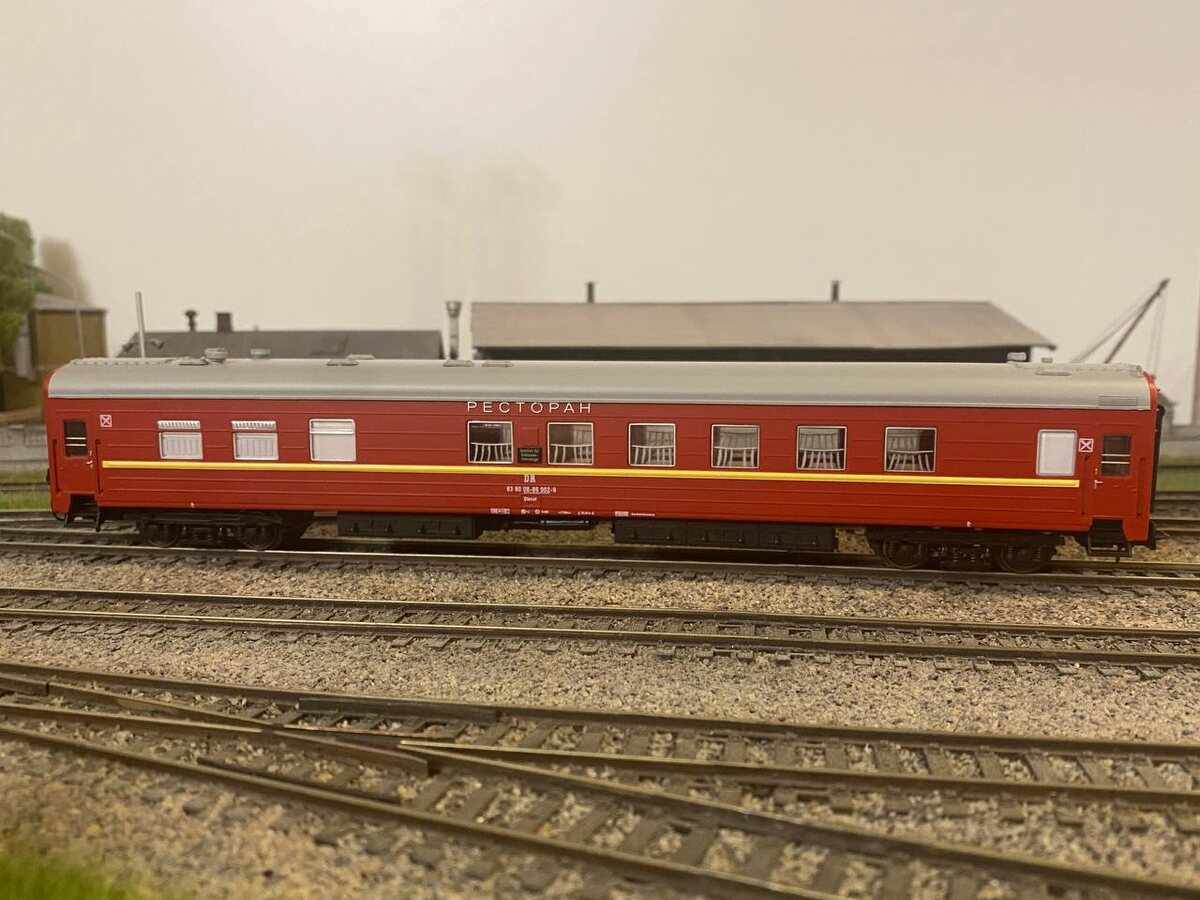 Модель от Евротрейна появилась в 2014 году в составе набора из двух вагонов, купейного и вагона-ресторана. Оба они представляли собой подвижной состав фирменного скорого поезда "Красная стрела", курсировавшего между Москвой и Ленинградом. Модель выкрашена в темно-красный цвет, имеет принадлежность к советским железным дорогам (СЖД) и относится также к концу IV модельной эпохи.