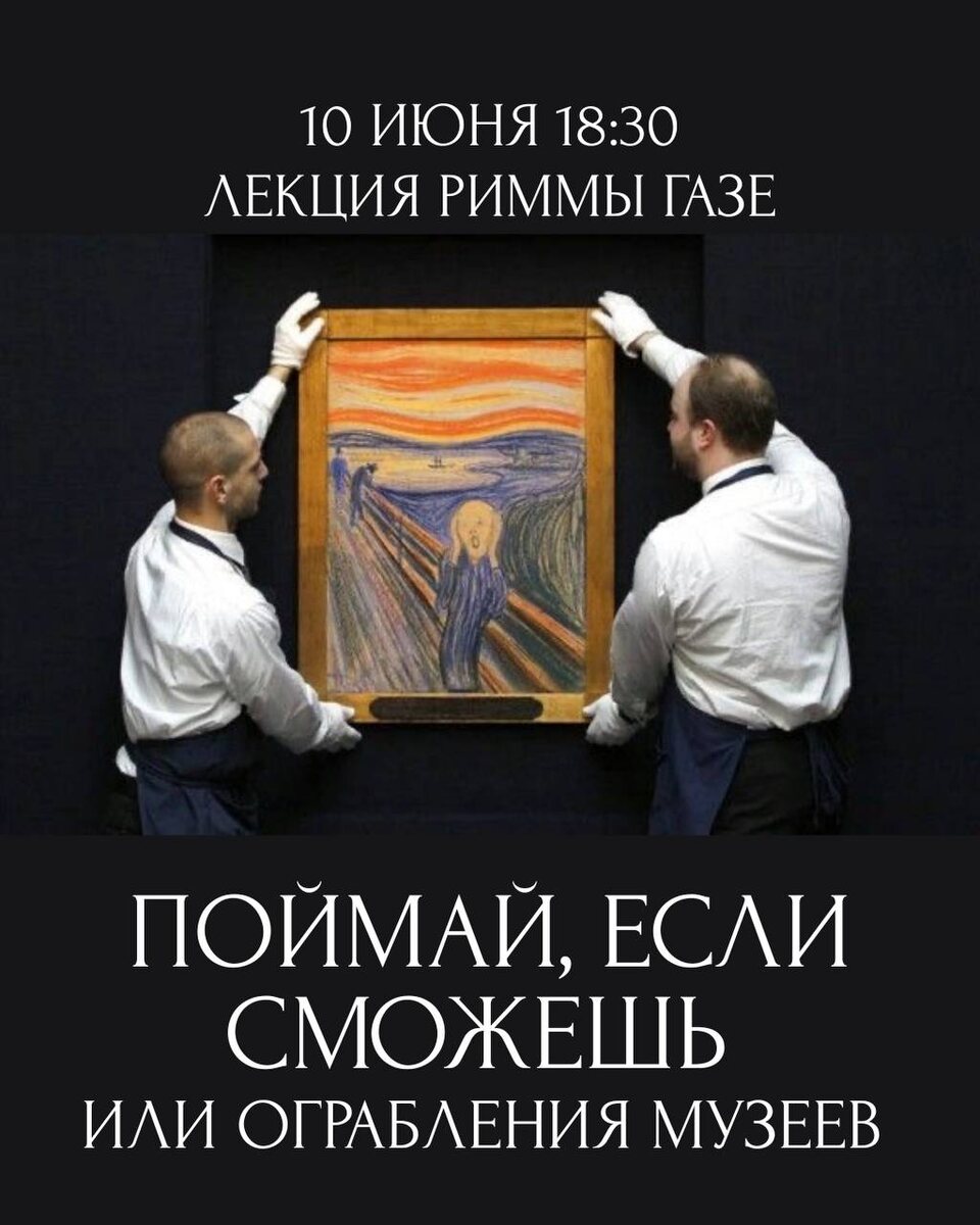 10 июня 18:30 Лекция Риммы Газе Поймай, если сможешь. Музейные ограбления нередко напоминают тщательно срежиссированные театральные постановки, где каждое движение - часть заранее продуманного плана. Почему произведения искусства становятся объектами преступного вожделения? Как похищенные шедевры исчезают с радаров и оказываются на черном рынке? Почему музейные кражи - не только преступление, но и культурный феномен? Узнаем на новой лекции Риммы Газе. Поговорим о самых дерзких и загадочных ограблениях: кража «Джоконды» из Лувра, похищение работ Вермеера и Дега из музея в Бостоне, исчезновение картины Мунка в день открытия зимних Олимпийских игр… Нас ждет теневая сторона искусства, полная риска, алчности, страсти и… любви к прекрасному. Билеты Кинофактура, ул. Варварская, 32 18+ #яместный