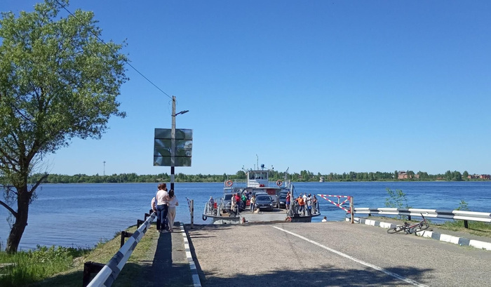 День 19 (Ярославская область). Программа на день простая - подобраться поближе к Ярославлю. По главной трассе ехать туда было бы слишком неинтересно, мы заедем окружным путём с другого берега через паром. Километраж надо сделать ничтожный, погода стоит жаркая, даже ночью стало потеплее, устроим себе отдых на берегу. Пока собираемся и завтракаем, начинает припекать так, что прячемся в тень. После старта практически сразу уходим с трассы и через двадцать километров мы у переправы. Здесь движение не такое активное, как в Козьмодемьянске, паром ходит по часам. Ждём около часа, но нам спешить некуда. Причаливаем в посёлок с громким названием Красный Профинтерн. Опять на нашем пути попадется незапланированный осколок истории - Замок купца Понизовкина. Горазды были всё-таки богатеи тех времён ухнуть деньжат на что-нибудь "эдакое". Не знаю, был ли у купца план прописать таким образом своё имя в истории, но у него получилось. Запасаемся водой и едем на берег. Решаю уйти немного с маршрута и про
