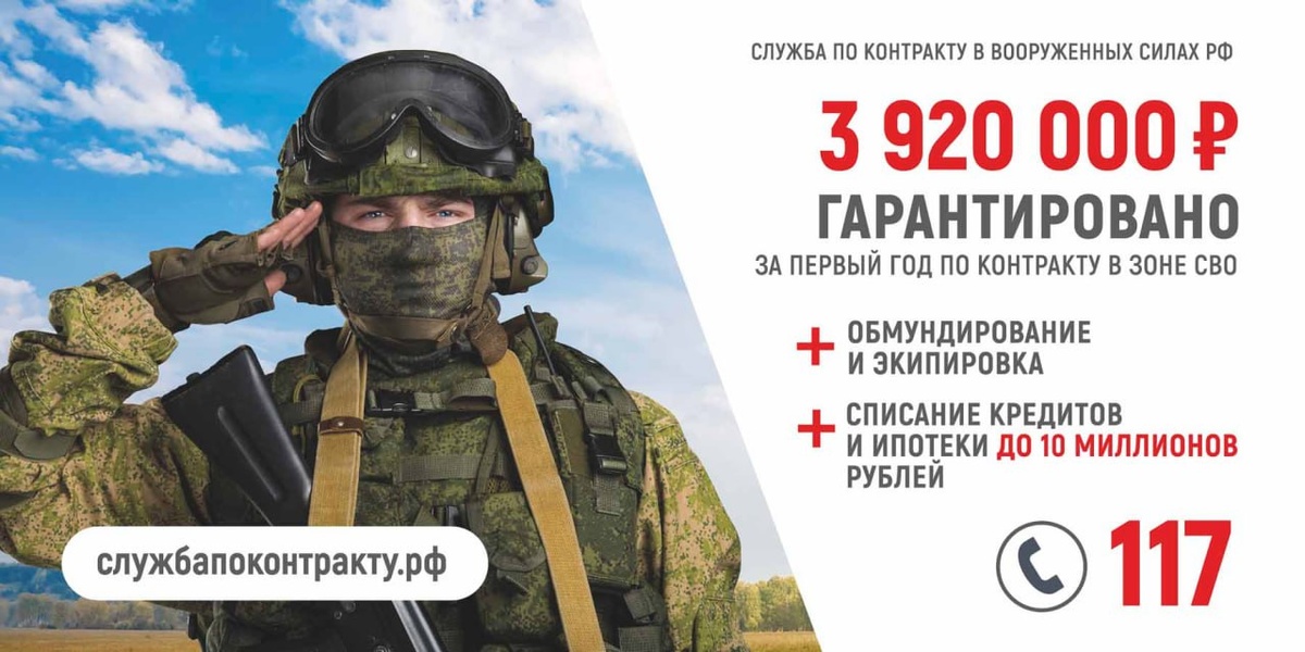 Вступай в ряды настоящих патриотов, присоединяйся к СВОим! ➡️ Чтобы поступить на военную службу по контракту, нужно обратиться в пункт отбора на военную службу (https://clck.ru/3CW3MK)или военкомат (https://clck.ru/3CW3Pp) по месту жительства. Подать заявку можно через единый портал государственных услуг (https://contract.gosuslugi.ru/) или сайт Минобороны России (https://clck.ru/3CW6TK). ❕ Подробности на сайте http://www.krskstate.ru/voen_kontrakts и по телефону 117, военкомат 8(39145)6-31-72 и пункт отбора 8-950-405-38-86.