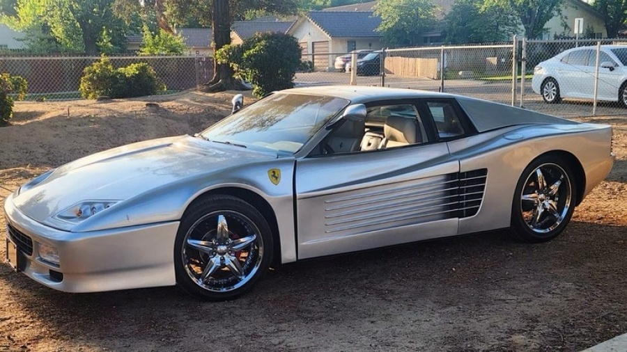 Продавец этого автомобиля называет его «Farrari» — с ошибкой в названии. И это не единственная странность автомобиля. Мы уже сталкивались с подобными репликами Ferrari, но эта версия более вольна в интерпретации дизайна Pininfarina. Одной из самых заметных особенностей является значительный зазор между дверью и передним крылом, вероятно, обусловленный установкой ламбо-дверей. Под капотом установлен двигатель Chevy 350, расположенный поперечно за сиденьями и соединённый с пятиступенчатой механической коробкой передач. Согласно объявлению, трансмиссия была перебрана, а также установлены новый сцепление, радиатор и вентилятор. Внешний вид автомобиля неоднозначен. Помимо странного зазора между дверью и крылом, кузов в целом неплохо имитирует Ferrari и выглядит достаточно аккуратно собранным. Фары выглядят необычно, но, судя по переднему бамперу, этот комплект пытается воспроизвести модель 512TR с фиксированными фарами, а не более раннюю Testarossa с выдвижными фарами. Это также заметно в с