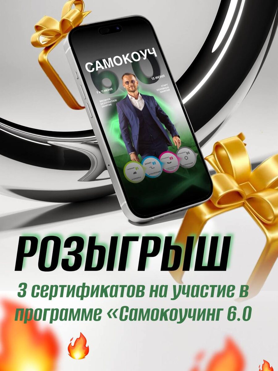 Розыгрыш 3 сертификатов на участие в программе «Самокоучинг 6.0 »🎉🔥 Как принять участие? 1. Подпишись на мой instagram: https://www.instagram.com/sergei_teplykh?igsh=anc5Y3dzdTVsd3M2 2. Сделай репост этой записи у себя в Stories или на странице с отметкой @sergei_teplykh 3. Напиши в комментариях, почему ты хочешь попасть на Самокоучинг 6.0. 🔹 3 победителя будут выбраны случайным образом и получат сертификат на бесплатное участие! 🔹 Итоги — 11 июня в конце бонусного вводного занятия Почему это шанс для тебя? 🚀 Трансформация за 5 дней — от мышления до стратегии жизни. 💡 Авторские методики от Сергея Теплых (Syucai Training Institute Dubai). 🎁 Ценность программы — тысячи отзывов, а ты можешь попасть бесплатно! Успей! Занятия стартуют уже 13 июня — время изменить свою реальность ⏳