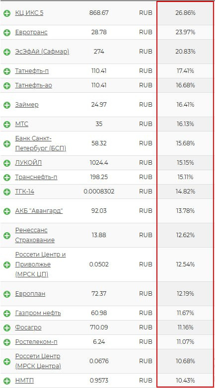 Как вы думаете, сколько из этих 19 компаний, в следующем году, вновь покажут выдающиеся результаты, и вновь окажутся в подобном ТОПе? По опыту моих многолетних наблюдений, список "дивидендных королей" постоянно меняется. Это происходило и в относительно более спокойное время, это же происходит и сейчас, в период геополитической напряженности и санкций, это же, я думаю, будет происходить и во все последующие годы.