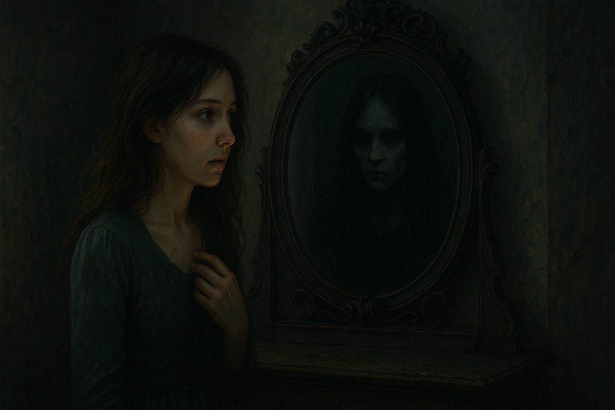 Зеркало начало "жить". В нём мелькали тени, появлялись силуэты. Лера слышала шёпот, когда проходила мимо, будто кто-то за стеклом говорил на полтона ниже слышимости. Иногда она видела сцены — не отражения, а как будто записи из прошлого. Один раз она увидела в нём женщину в старинном платье, которая плакала и держала на руках окровавленного мужчину. У женщины были глаза, полные безысходности, а губы двигались — будто шептали имя.