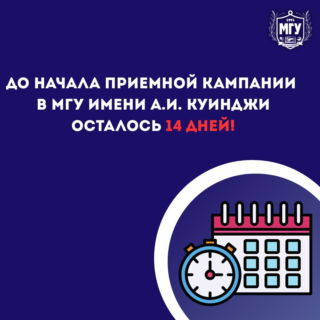 До старта приёмной кампании в Мариупольском государственном университете имени А.И. Куинджи осталось 14 дней! Планируешь поступление на бакалавриат или в магистратуру? У тебя есть возможность: — углубить знания, — сменить направление, — сделать уверенный шаг к профессиональному успеху! Подписывайся на официальные ресурсы университета, чтобы не пропустить важную информацию о поступлении! Контакты приёмной комиссии: Телефон: +7 (949) 723-07-53 Email: enrollment@mgumariupol.ru Адрес: г. Мариуполь, пр. Строителей, 129А Мы Готовим Успешных!