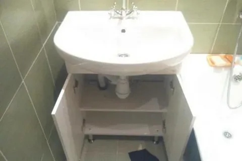 -Глубина: Убедитесь, что глубина тумбы (минус толщина задней стенки) позволяет установить раковину, сифон и оставить место для подключения гофры к канализации.