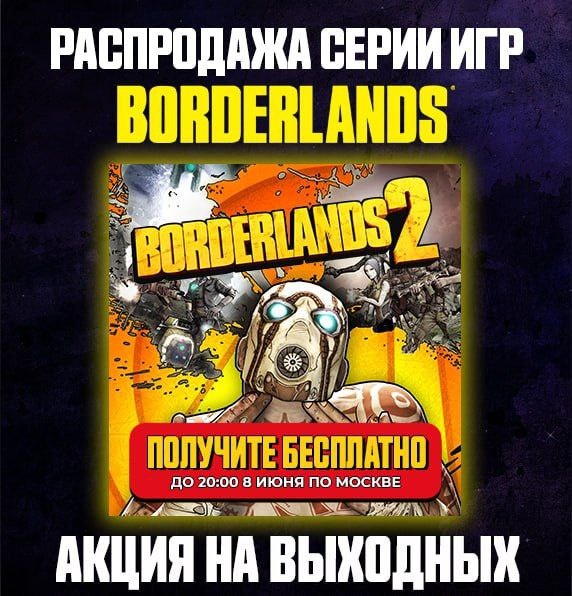 В Steam стартовала раздача Borderlands 2 Borderlands 2 — это кооперативная игра в жанре фантастического шутера от первого лица с элементами РПГ. Забрать игру бесплатно можно до 8 июня 20:00 МСК.