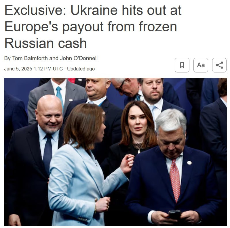 Reuters пишет, что правительство Украины раскритиковало решение забрать миллиарды евро замороженных в Европе российских активов и передать их западным инвесторам. Обиженный Киев даже предупредил европейцев, что они еще поджалеют, и это, мол, ослабляет позицию Европы против Москвы. По данным агентства, такая критика последовала после того, как в прошлом месяце бельгийская компания Euroclear забрала 3 миллиарда евро (3,4 миллиарда долларов) наличных российских инвесторов, хранящихся в клиринговой фирме, для выплат западным инвесторам, потерявшим свои средства, когда Москва, в ответ на санкции, арестовала их деньги, хранившиеся в России. Украина предупредила, что таким образом ЕС посылает неправильный сигнал и угрожает ослабить собственную позицию в отношениях с Россией, в то время как продолжается обсуждение использования всех 300 миллиардов долларов российских активов для восстановления и защиты Украины. «Если частные инвесторы получат компенсацию раньше жертв войны, это не будет справе