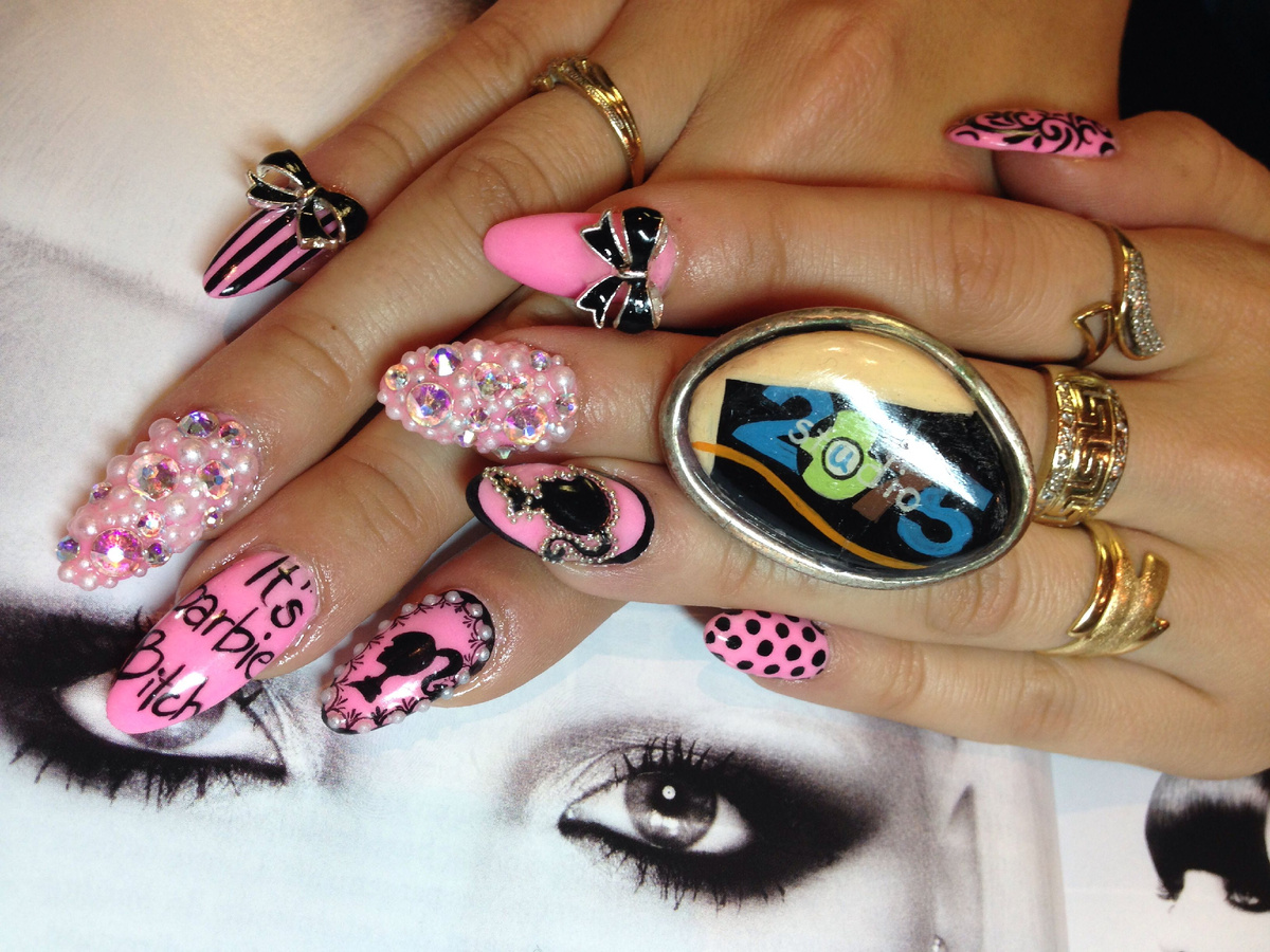 ... но их все равно часто можно встретить на женщинах - парадокс! Год назад я слезла с иглы гель-лаков и делаю теперь только гигиенический маникюр, даже обычным бесцветным лаком ногти не покрываю. Но продолжаю следить за трендами и антитрендами в маникюре. В России вообще маникюр - это какой-то культ, часть образа наравне с аксессуарами и бижутерией. Поэтому если ты интересуешься модой в целом, то и модными маникюрами волей-неволей приходится интересоваться. Про модные дизайны поговорим попозже, сегодня же затронем тему антистильного маникюра. Стразы, блестки, фольга... Желательно, чтобы все и сразу на всех ногтях. Я называю такой маникюр "укради меня сорока", потому что его блеск способен собрать стаю вороватых птиц вокруг. В целом в желании придать блеска маникюру нет ничего плохого, если это умеренный акцент на паре ногтей. А вот перебор с украшательством - это всегда антистильно, будь то ногти, одежда или аксессуары. 10 ультраблестящих пальцев - это равнозначно 10 золотым кольц