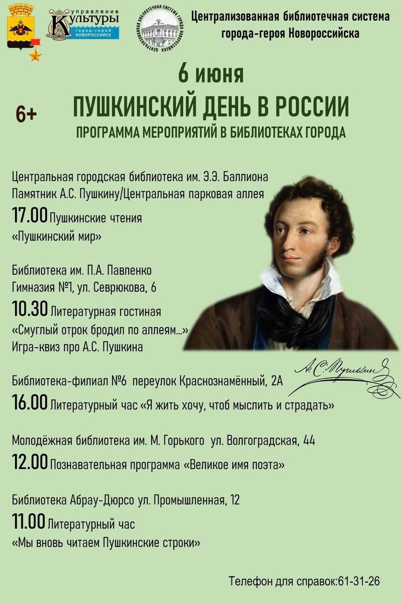 Афиша праздничных мероприятий в Новороссийске, посвященных Дню русского языка.