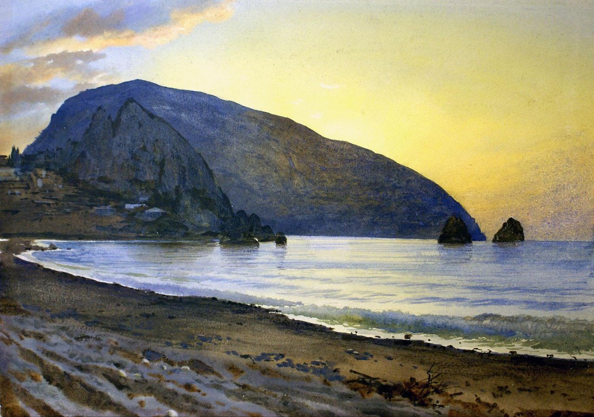 Альберт Бенуа. Вид Медведь-горы в Крыму. Конец XIX - начало XX в. Бумага, акварель, 23,8х33,1 см. Из фондов: Государственный Эрмитаж Инвентарный номер: ЭРР-4705 Поступление: Поступил в 1939 г. Происходит из собрания С.П. Яремича #живопись #графика #искусство #АюДаг #Гурзуф