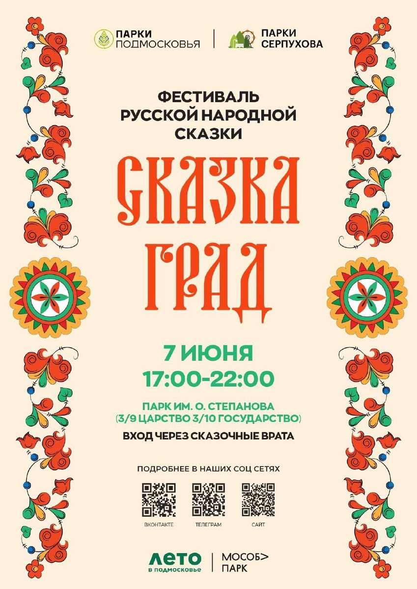 ✨ Фестиваль русской народной сказки "Сказка Град" С 17:00 до 22:00 Вас ждёт Сказочное царство, где можно помериться силой на "Богатырской заставке", поучаствовать в мастер-классах Рукодельниц, пройти квест "Волшебное зеркальце", посмотреть русские народные сказки "Жили-были", поиграть в огромную игру ходилка-бродилка многое другое.. 💮А с 21:40 до 22:00 приглашаем на Световое шоу «Тайна Цветодива» («Смородиновый пруд», «Кисельный берег») 📕Приходите, будет Сказочно интересно! * Видео Парки Серпухова 🚫 Возраст: 0+ 📆 07.06.2025 🕒 17:00 🏢 Парк им.Олега Степанова 📍 г. Серпухов, ул. Луначарского, д.74 💰 Вход свободный❗️ #webСерпухов ⭐Разместить публикацию ⭐Поддержать канал голосом ✅ Мероприятия Серпухов https://dzen.ru/id/66f01c6eb4c6fe60c9ca1608 http://vk.com/serpukhov_events http://dzen.ru/serpukhov_events