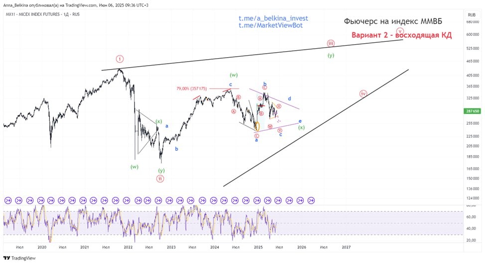 По текущей ситуации на фьючерсе на индекс на ММВБ мы видим продолжение бокового движения, которое может еще продолжиться в рамках формирующейся структуры треугольника в волне [x] of c of (x) of [iii] - - вариант с восходящей КД.