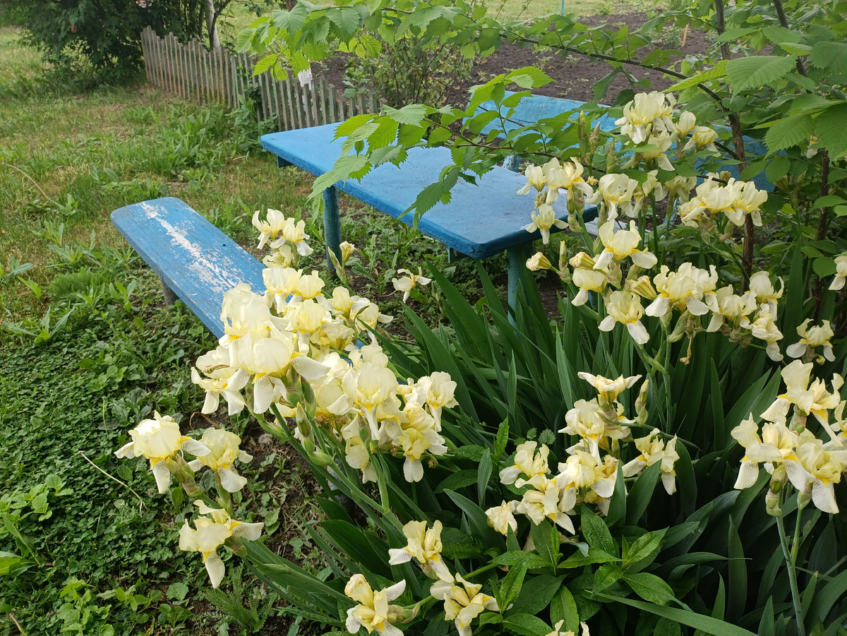 Я и забыла,когда приезжала в гости к родителям весной, обычно это конец лета или зима. Прошлый раз мы были здесь 10 месяцев назад,когда эвакуировались из за событий августа 2024. Поэтому столько цветов я не видела давно. Одних только ирисов несколько сортов. И цветущая сирень о существовании которой я да же не знала. И это конец мая! У меня дома она давно уже отошла. Сегодня мы много времени провели на улице. Саша , конечно же не отходила от курочек. Рвала для них сочные зелёные одуванчики и кормила через сетку. А ещё у бабушки в этом году курица вывела цыплят. Пять маленьких пушистых колобочков катаются за мамой-курушкой. Саше это в новинку. Но следить нужно внимательно,что бы дочка близко не подходила,страшнее зверя чем разъярённая мама - курица нет,может и заклевать. Не обошлось и без происшествия. Меня укусила пчела. Последний раз со мной такое было ещё в школе. Пчела выбрала меня объектом для нападения и как я не отбивалась она таки жиганула меня в подмышку. Только потом я