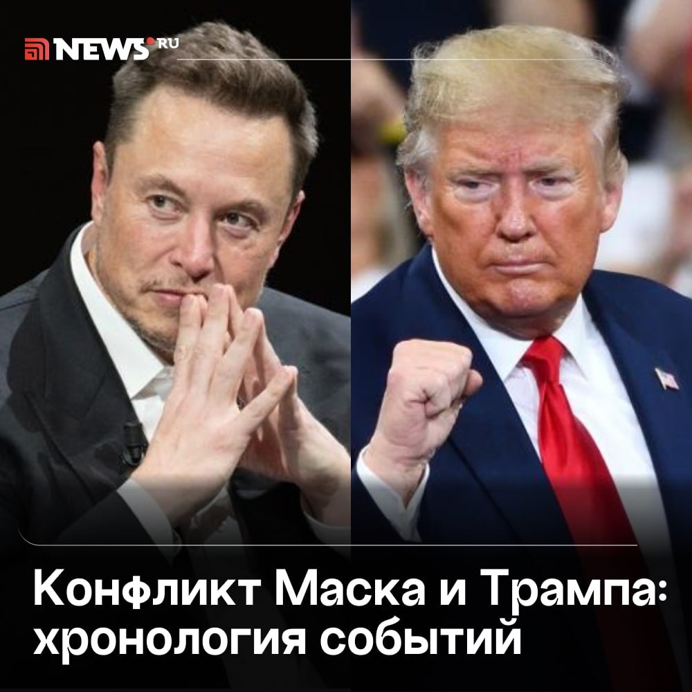 В ответ на пост Как поссорились Дональд Трамп и Илон Маск: 🔹29 мая предприниматель покинул должность главы Департамента эффективности правительства; 🔹31 мая Трамп отозвал кандидатуру сторонника Маска Джареда Айзекмана на пост главы NASA; 🔹3 июня Маск раскритиковал налоговый пакет Трампа, называя его «мерзким и возмутительным»; 🔹5 июня Трамп заявил, что разочарован Маском, тот в ответ сказал, что без него Трамп не смог бы победить на выборах; 🔹Трамп назвал Маска «сумасшедшим» и предложил лишить его государственных субсидий; 🔹Маск сделал сенсационное заявление, намекнув на связь Трампа с делом финансиста Джеффри Эпштейна, который ранее был обвинен в организации проституции; 🔹Маск предупредил о выводе из эксплуатации космических кораблей Dragon, но позже передумал. ⭕ Подписаться | Прислать новость | Буст