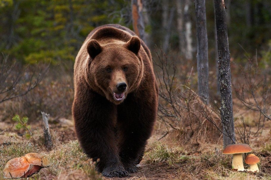 Большинство «полезностей» медведь получает из растительной пищи (зеленые растения, ягоды), которые и составляет большую часть его рациона, но нельзя сбрасывать со счетов и пищу животного происхождения. А ещё в рацион бурого медведя входят ГРИБЫ. Однако, в меньшем количестве, чем растительность и ягоды. А входят грибы в рацион потому что, в грибах содержатся витамины, минералы и главное клетчатка. Скорее всего клетчатка – это основное, что заставляет бурого медведя вносить грибы в свой рацион. Во многих грибах много клетчатки, больше чем в тех же ягодах. Хотя помимо «полезностей», грибы могут ему просто нравится в конце концов.