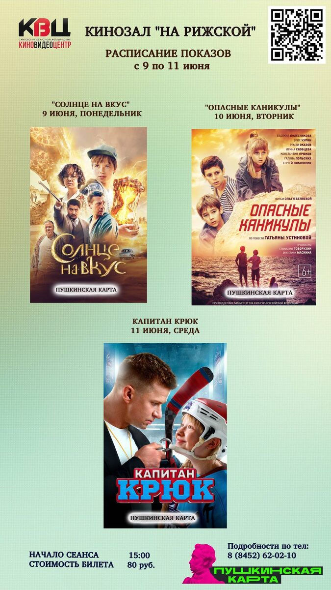 ☀️ Кинозал «На Рижской" - летнее расписание с 9 по 11 июня