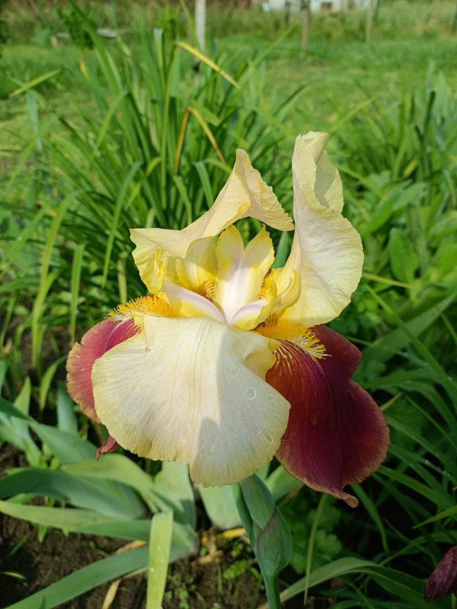 Сегодня замечательное утро!!! Ночью прошёл дождь, воздух свежий, тепло!!! Настоящая калининградская погода. Нет резких перепадов между ночной и дневной температурой. Растения тоже довольны, по-моему. Долго сомневалась нужна ли клумба с цветами посреди участка. Много возилась с ней. Но сейчас очень довольна, хотя пока расцвели только два ириса на ней. Какие же они красавчики!!! Дождь уже две ночи довольно сильный, но им хоть бы что, я думала, что нежные лепестки не выдержат. Приятно видеть результаты своего труда и на клубничной грядке. Хотя это у меня не грядка, а полянка. Не люблю ровные гряды в огороде. Если кто-то любит, я не против, если что. Я только про себя и никому ничего не советую, не учу. Просто делюсь своими маленькими радостями. Спасибо большое всем, кто поздравил нас с Колей с 47 летием нашего брака. Извините, что не ответила каждому лично. Я обычно благодарю каждого человека. Коля болел, а когда кто-то болеет из моей семьи, я ни о чем другом думать не могу. Сегодня ему уже лучше, всё хорошо.