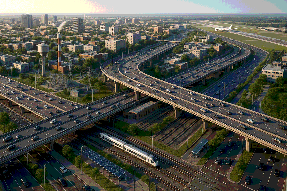- Примеры: Магистрали, транспортные развязки, терминалы общественного транспорта.
