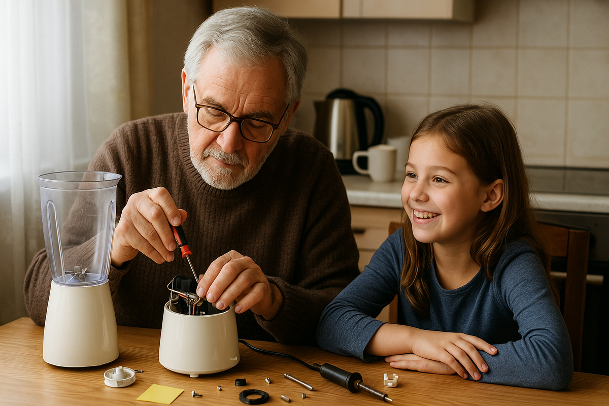 — Папа, а дядя Виктор правда может починить наш блендер? — спросила София, глядя на сломанную технику на кухне.