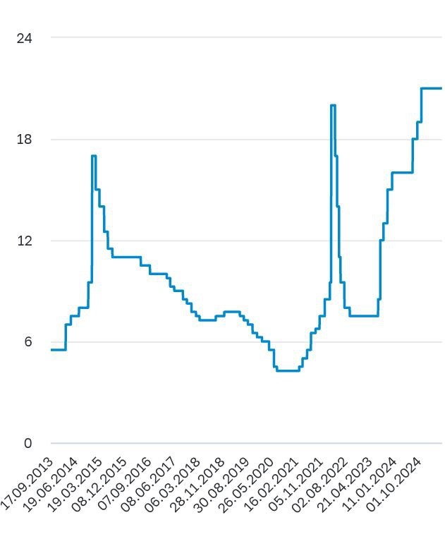 Ключевая ставка Сегодня пятница, 6 июня, в 13:30 мск Банк России объявит решение по ключевой ставке. В 15:00 мск начнется пресс-конференция главы ЦБ Эльвиры Набиуллиной. Большинство экспертов предполагают 20%