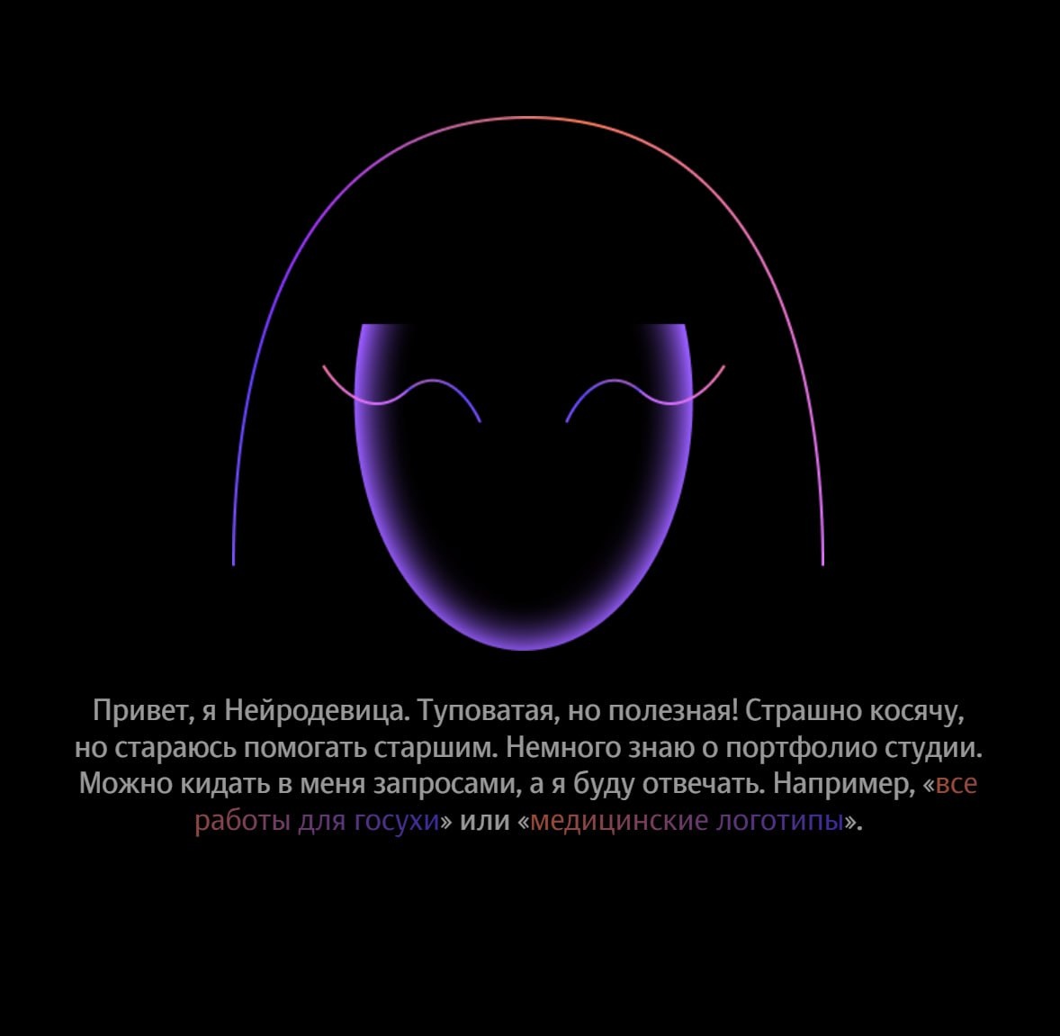 🤖 .енная Нейродевица "Привет, я Нейродевица. Туповатая, но полезная! Страшно косячу, но стараюсь помогать старшим." Так представляется Нейродевица, новая нейросеть от Студии Артемия Лебедева. Она предназначена для помощи в навигации по портфолио студии. Пользователи могут задавать ей запросы, такие как «все работы для госухи» или «медицинские логотипы», и она предоставит соответствующие результаты. 🧠 Что умеет? Находит проекты студии по заданным темам. Помогает ориентироваться в обширном портфолио. Общается простым и понятным языком. 🤖 Почему это интересно? Потому что Нейродевица — это шаг к более интерактивному и доступному представлению работ. Она делает процесс поиска нужной информации проще и быстрее.