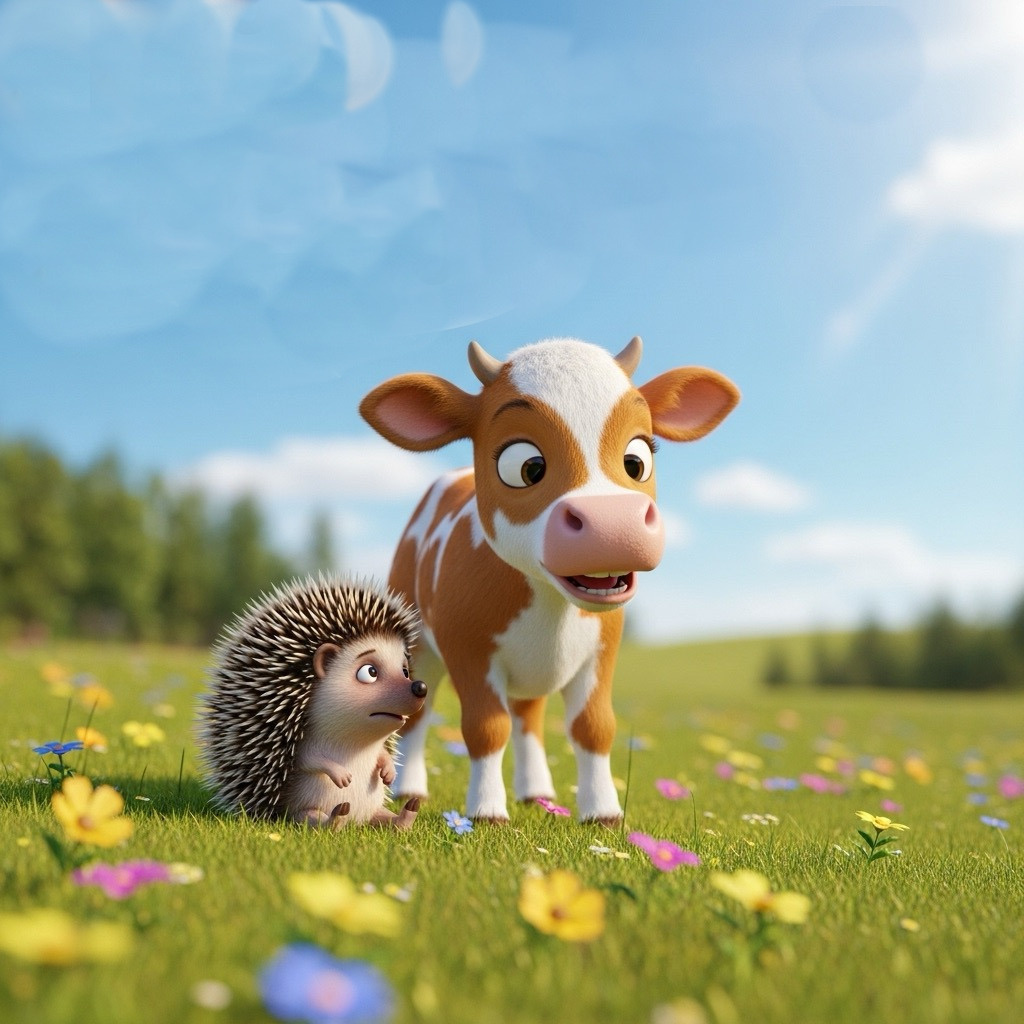 Теленок увидал ежа и говорит: —Я тебя съем! Еж не знал, что теленок ежей не ест, испугался, клубком свернулся и фыркнул: —Попробуй. Задрав хвост, запрыгал глупый теленок, боднуть норовит, потом растопырил передние ноги и лизнул ежа. —Ой, ой, ой! — заревел теленок и побежал к корове-матери, жалуется. —Еж меня за язык укусил. Корова подняла голову, поглядела задумчиво и опять принялась траву рвать. А еж покатился в темную нору под рябиновый корень и сказал ежихе: —Я огромного зверя победил, должно быть, льва! И пошла слава про храбрость ежову за синее озеро, за темный лес. —У нас еж — богатырь, — шепотом со страху говорили звери.