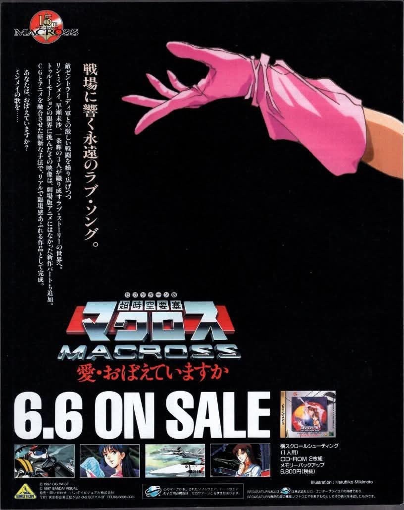 Образ этой игры можно найти в нашем разделе с играми. -------------------------------------------------------------- ↪ UltimateRetroBoy 6 июня 1997 г. вышла игра The Super Dimension Fortress Macross: Do You Remember Love? в жанре shoot'em up/horizontal scroll-shooter по одноимённому аниме. На PlayStation игра вышла в 1999 году. #ultimateretroboy #TheSuperDimensionFortressMacrossDoYouRememberLove #Macross #Anime #Sega #Saturn ➰ ВК