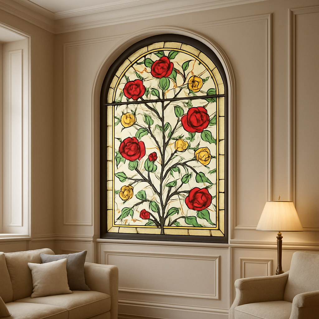 Анализ премиальных интерьеров с витражами в исторических особняках и современных резиденциях 📐 Зачем вообще использовать витраж в жилом интерьере? Витраж — это декоративная техника оформления стекла, чаще всего с использованием свинцовой пайки, цветного или фактурного стекла. На протяжении нескольких столетий витражи применялись не только в культовых зданиях, но и в частных домах — в дверях, окнах, потолках и перегородках. В интерьерах премиального сегмента витраж ценится не за декоративность, а за способность добавлять пространству глубину и смысл. Заказчики часто выбирают витраж, когда ищут нестандартное решение: например, чтобы зонировать пространство без потери света или создать акцент, не перегружая интерьер. С конца XIX века витражи вошли в архитектурную моду в России. Они стали популярны благодаря модерну и распространению авторского дизайна. Такие элементы нередко производились вручную по индивидуальному заказу. Это означало, что даже внутри одного дома витражи могли отличатьс