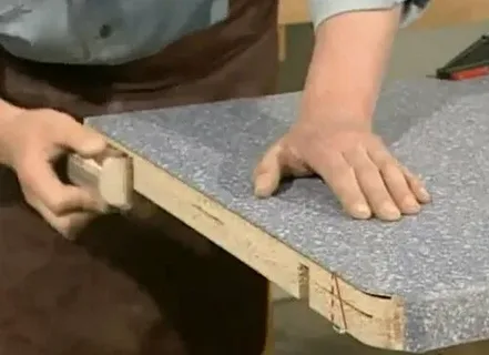 -Возьмите мелкий напильник или рашпиль. Держа его под очень небольшим углом (почти плашмя) к поверхности столешницы и к кромке, аккуратно пройдитесь вдоль всего свеса. Цель – слегка скруглить острый край кромки и убрать заусенцы, *не повреждая поверхность столешницы!*