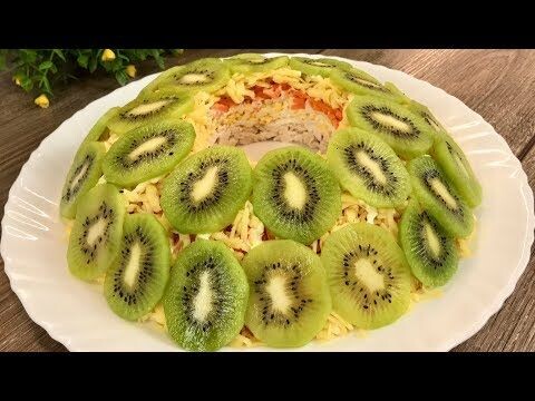 Салат "Малахитовый браслет " частенько готовят на новогодний стол. Я думаю он прекрасно подойдёт для обычных будней. Очень вкусный, с необычным сочетанием простых ингредиентов. Ингредиенты: - куриное филе 300 гр - киви 2 шт - кукуруза 1 банка - картофель 1 шт - морковь 1 шт - яйца 2 шт - масло сливочное 20 гр - масло растительное 2 ст.л - майонез Приготовление: Подготовить необходимые продукты. Куриное филе промываем под проточной водой, просушить и нарезать на крупные куски. Берём сковороду смазанную сливочным маслом и обжариваем курицу, посолить, поперчить, на каждой стороне по 3 минуты. Плиту выключаем, но сковороду оставить, пусть доходит куриное филе. Картофель и морковь помыть и отварить до готовности. Яйца отварить и остудить. Отварные картофель, морковь и яйца натереть на крупной тёрке. Курицу порезать кубиками. Начинаем собирать салат. Первым слоем кладём картофель, смазываем майонезом. Второй яйца, смазать майонезом. Третий курица, смазать майонезом. На курицу выклады