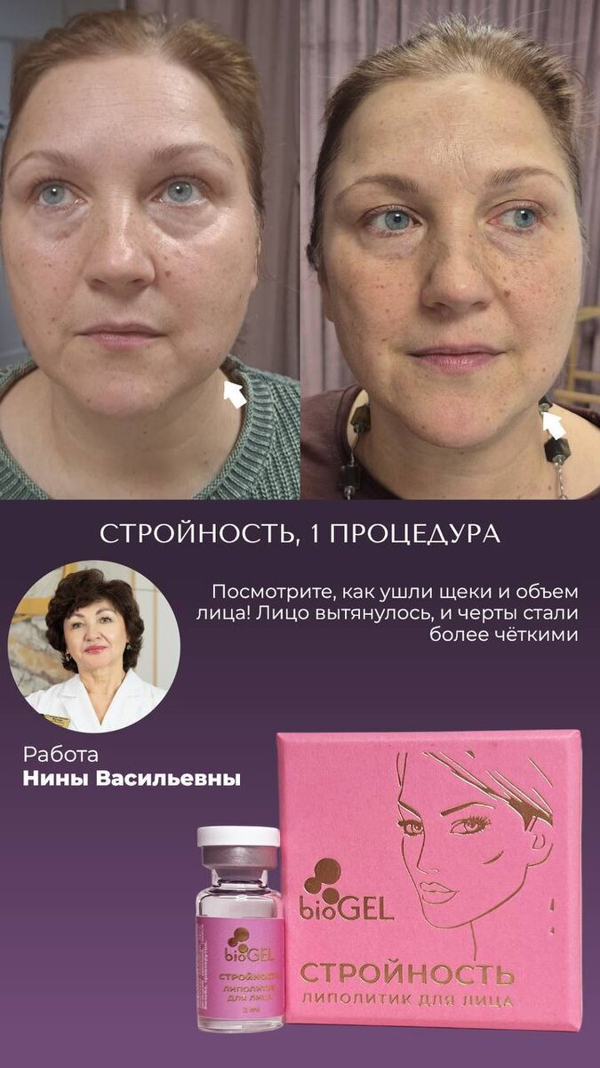 ПЕПТИДНЫЙ ЛИПОЛИТИК «СТРОЙНОСТЬ» BIOGEL 🤩 Идеальный овал за несколько процедур! ПОКАЗАНИЯ: ❤️🔥Создание четкого овала лица без «брылей» ❤️🔥Работа с жировыми «ловушками» на лице ❤️🔥Уменьшение носогубной складки и «второго» подбородка ❤️🔥Компактизация лица при деформационно-отечном типе ❤️🔥Эффект похудения без спорта и диет КУРС: ➡️2-4 процедуры Стройность BioGEL с периодичностью 10-14 дней.
