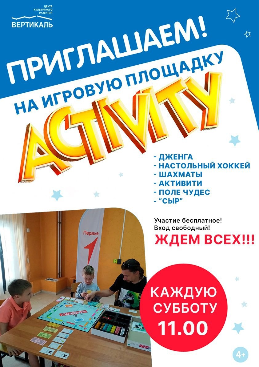 ✨ Игротека «Активити» в Пущино по субботам 🎲Каждую субботу ровно в 11.00 🧩Здесь любители настольных игр строят, конструируют, играют в шашки и шахматы, разные ходилки, лото, твистер и многое другое. В музыкальной гостиной всегда звучат детские веселые песни, которые помогают создать хорошее настроение. 🏓Ведущая игротеки — Алла Смоленская — знает все игры и помогает ребятам освоить их. А ещё только в этот день мы достаём наш теннисный стол и даём возможность любителям настольного тенниса отдохнуть активно. 🚫 Возраст: 6+ 🏢 ЦРК "Вертикаль" г. Пущино 📍 г.о. Серпухов, г. Пущино, проспект Науки, 7 💰 Вход свободный❗️ ✅ Мероприятия Серпухов https://dzen.ru/id/66f01c6eb4c6fe60c9ca1608 http://vk.com/serpukhov_events http://dzen.ru/serpukhov_events