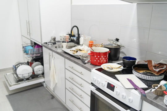 Захламленная кухня. Картина маслом: крошки и грязь на обеденном столе и под ним; потеки на плите; раковина, полная грязной посуды. Ощущение запустения и захламления. Однако нет ничего сложного в том, чтобы перед сном перемыть посуду, навести порядок на столе и столешнице, промести пол. Пятнадцати минут хватит за глаза.
