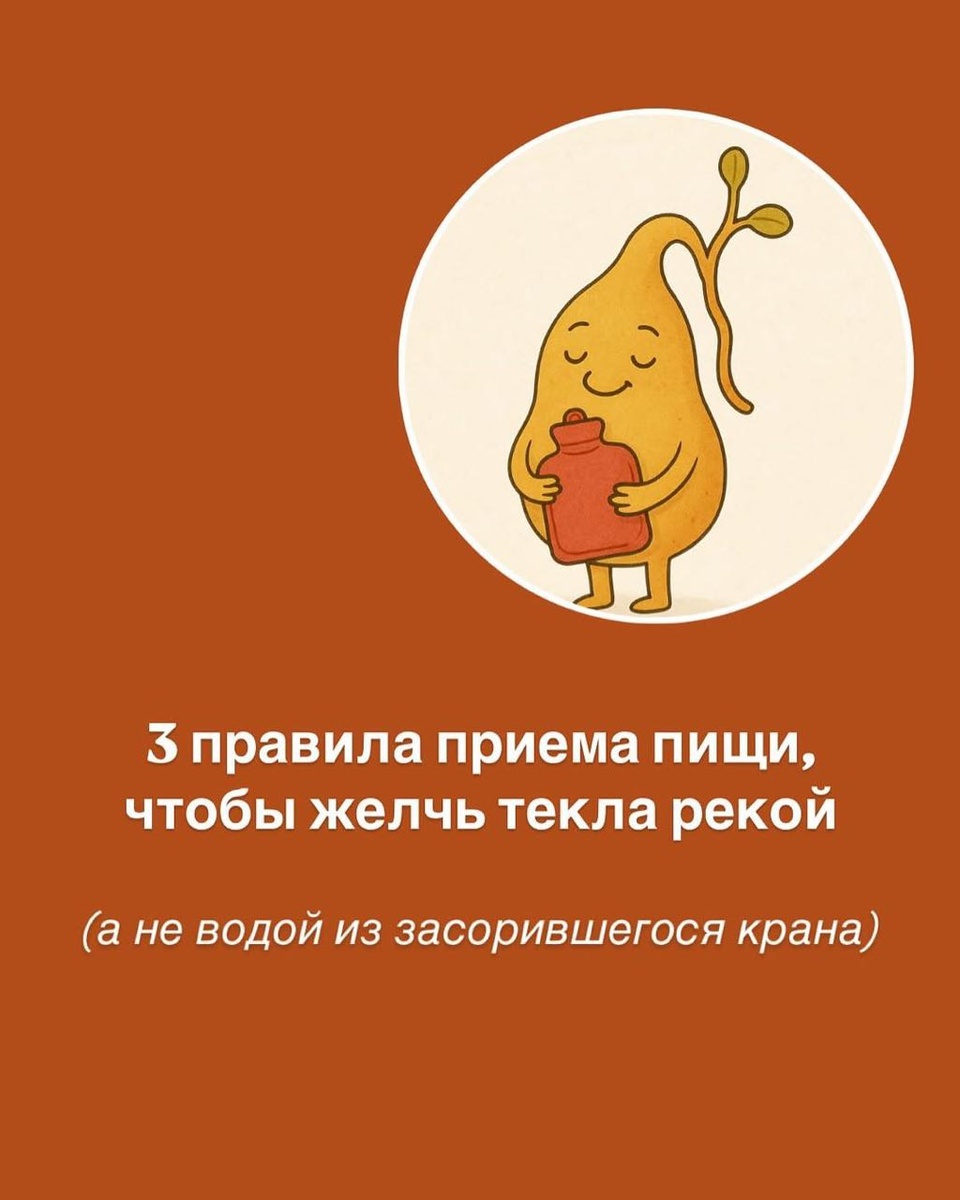 3 правила приема пищи, чтобы желчь текла рекой (а не водой из засорившегося крана) Листайте карусель ➡️ 1. Грейте, как римлянин. 2. Ешьте по расписанию, как швейцарские часы. 3. Сочетайте жиры с горчинкой, как шеф-повар. 4. 👇 Сохраните карусель, чтобы не забыть секреты здорового пищеварения!